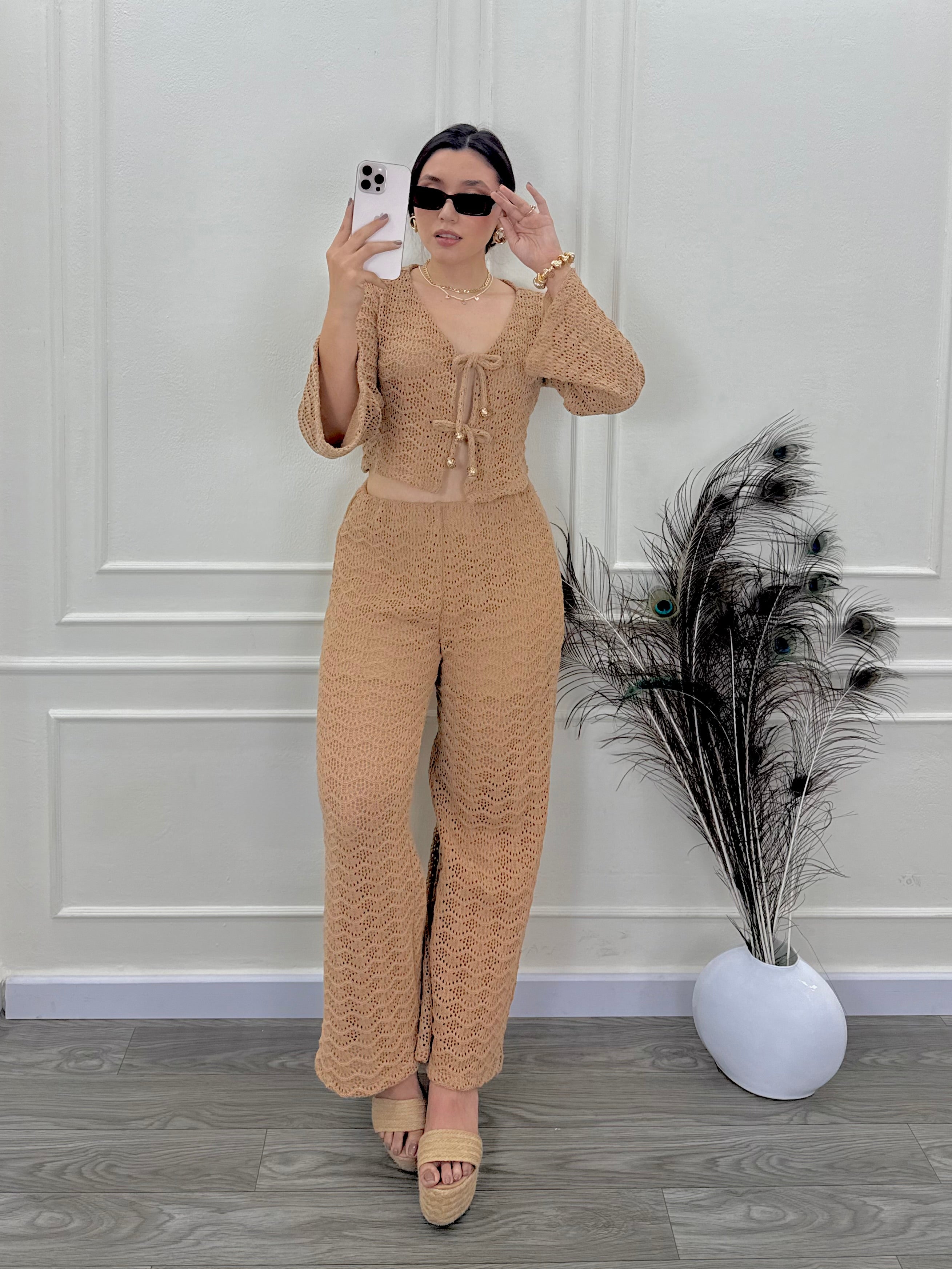 Perfecto para combinar con la blusa tejida a juego o tops básicos para un estilo versátil y moderno.